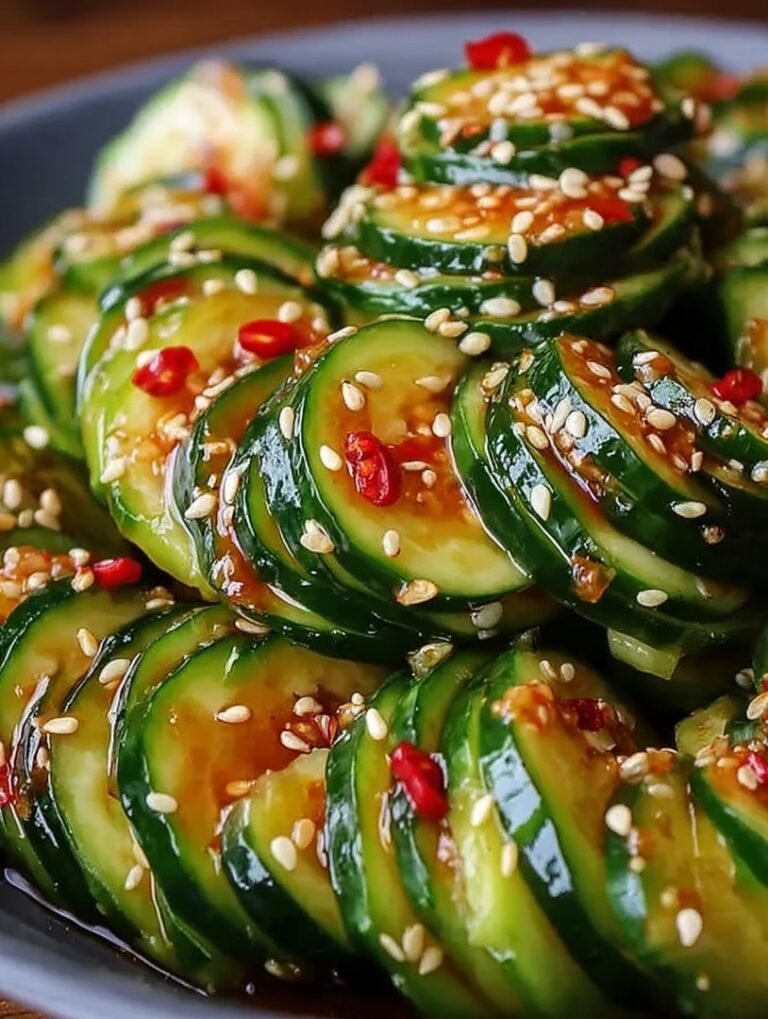 Asiatischer Gurkensalat mit Chili & Sesam: Ein unglaublich erfrischender Genuss für heiße Sommertage