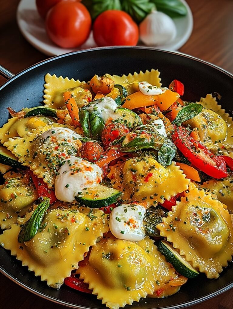 • Visuelles MeisterwerkDank der leuchtenden Farben von Paprika, Zucchini und den Ravioli selbst ist dies ein echter Hingucker auf jedem Esstisch.