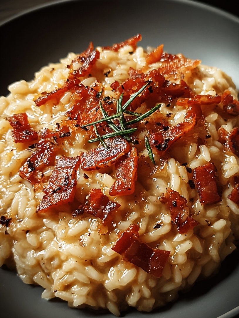 Französisches Zwiebel- und Truthahnspeck-Risotto