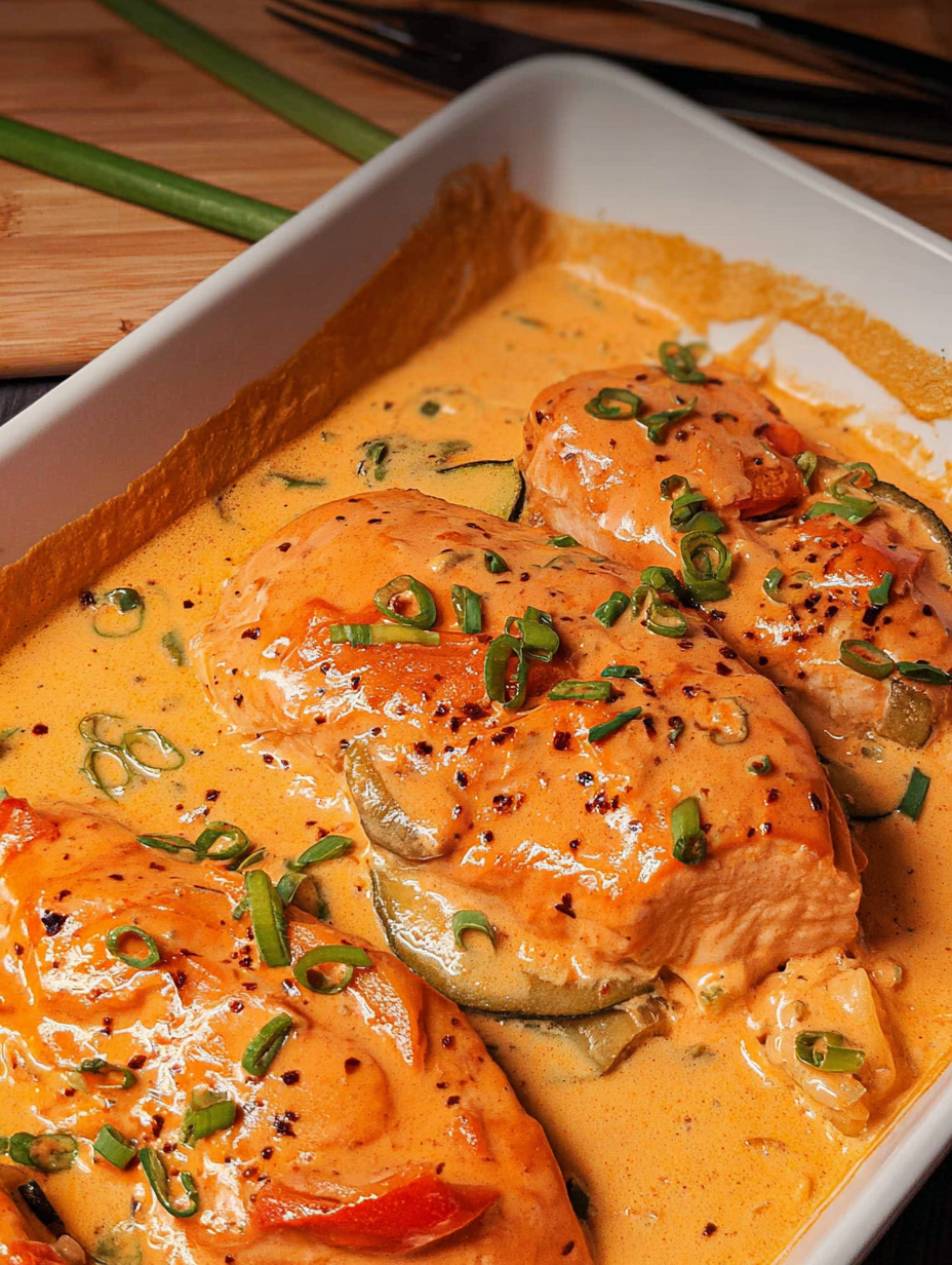 Hähnchenbrust in Frischkäsesoße mit Paprika und Zucchini aus dem Offen