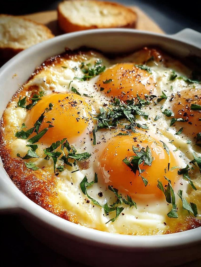 Gebackene Eier mit Kräutern und Gruyère Käse