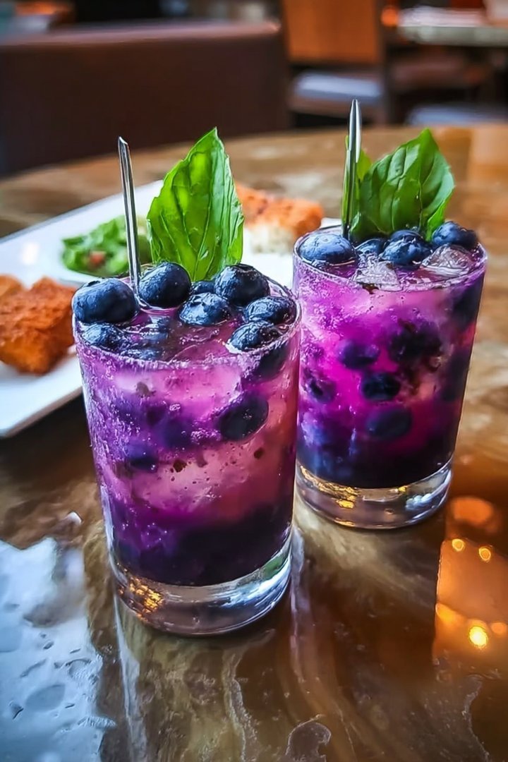 Blaubeer-Basilikum-Zitronen-Lavendel-Mocktail