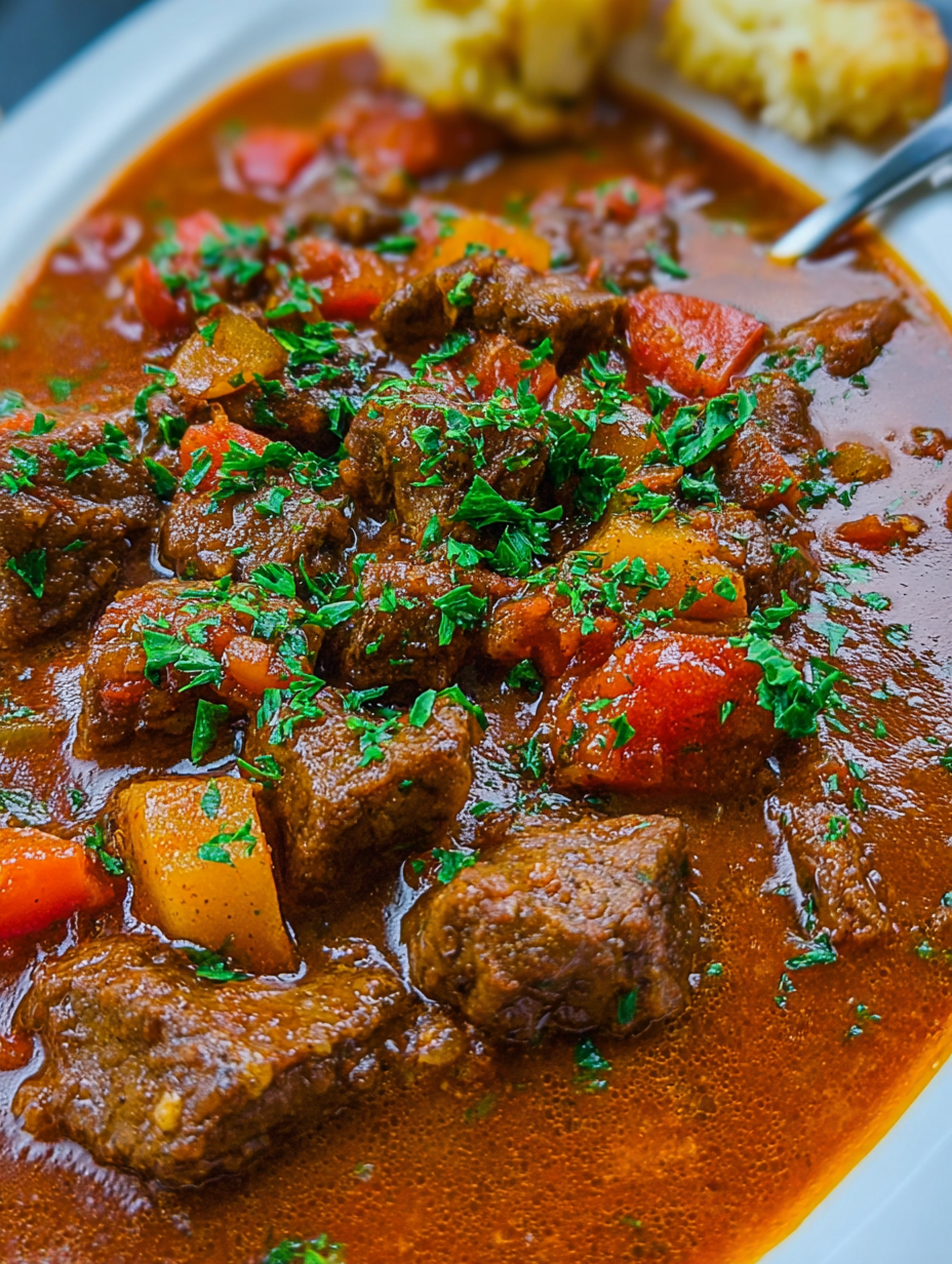 Einfache ungarische Gulaschsuppe mit Rindfleisch