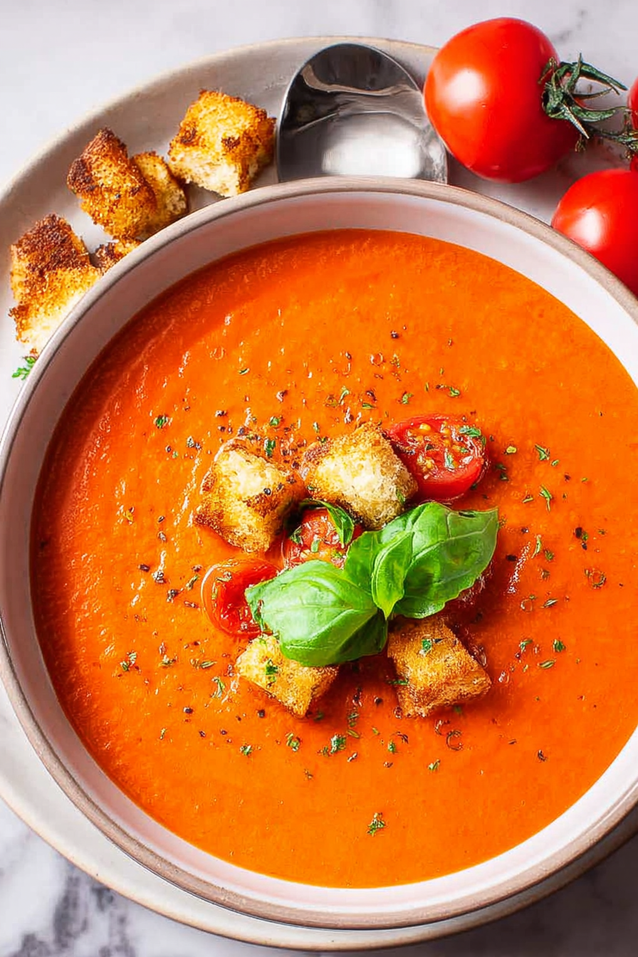 Tomatensuppe mit geröstetem Knoblauch