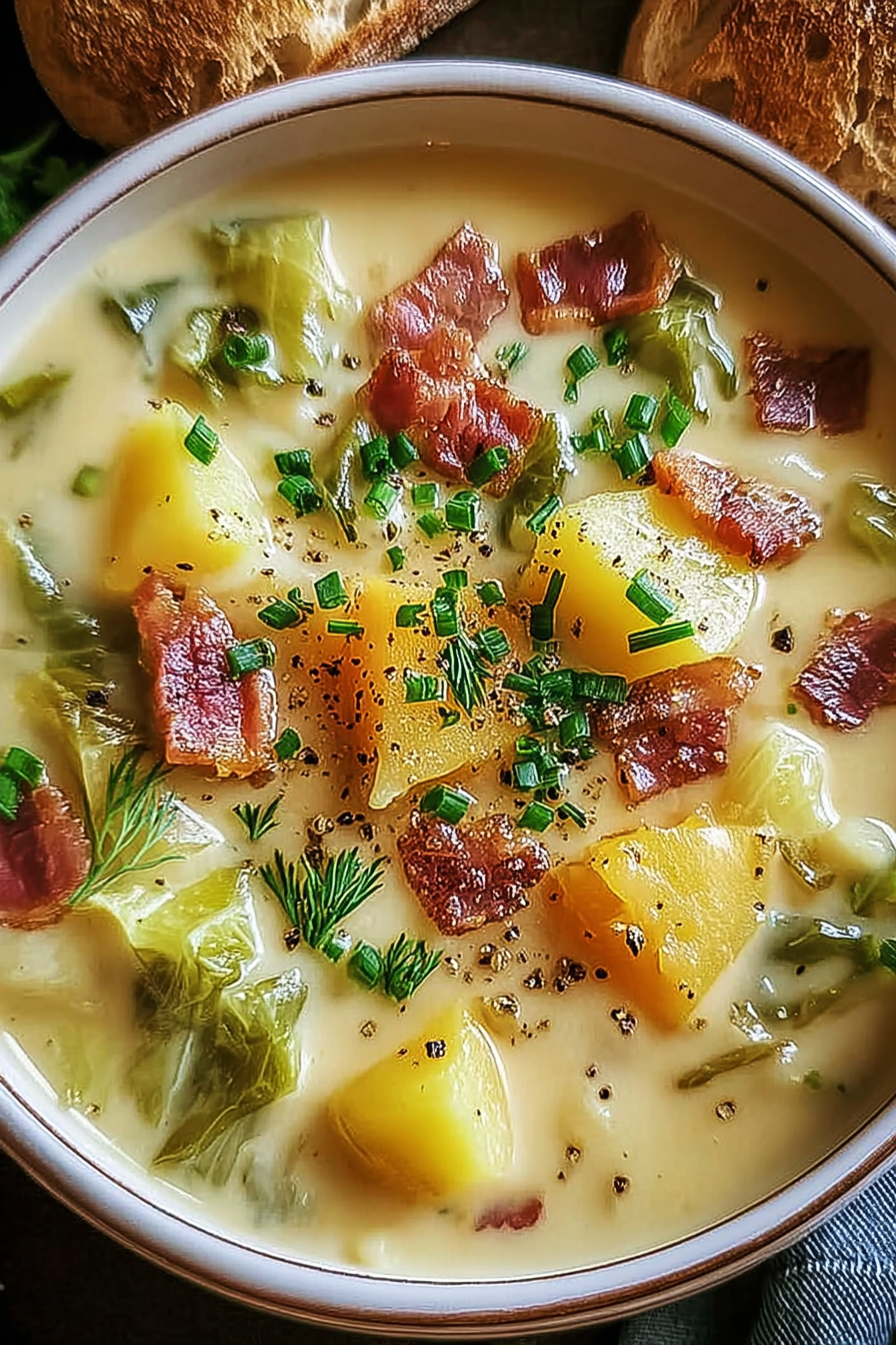 Irische Putenspeck-, Kohl- und Kartoffelsuppe
