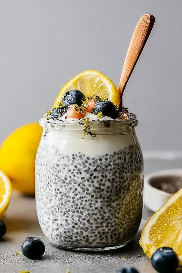Dieser Chia-Pudding mit Zitronencreme ist ein erfrischender und gesunder Genuss, der perfekt als leichtes Frühstück, nahrhafter Snack oder leckeres Dessert geeignet ist.