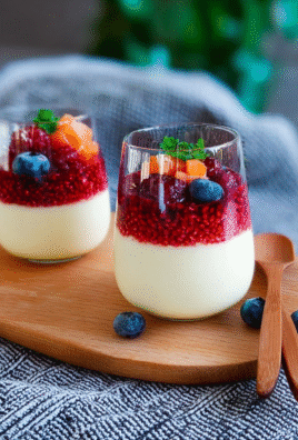 1. **Beeren-Chia-Pudding: ** Frische oder gefrorene Beeren pürieren und unter den Chia-Pudding mischen.