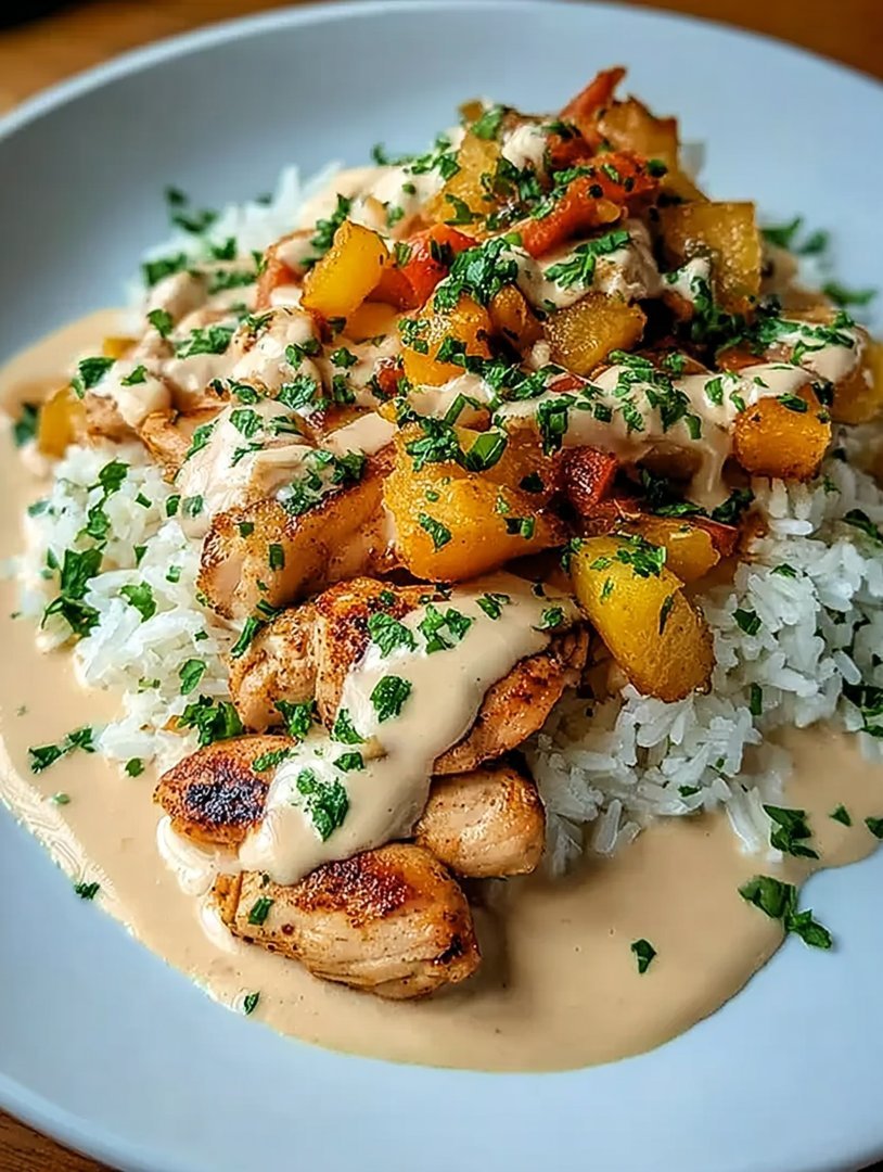 - Die Kombination aus herzhaftem Hähnchen und cremiger Soße bietet ein Geschmackserlebnis, das einfach unwiderstehlich ist.