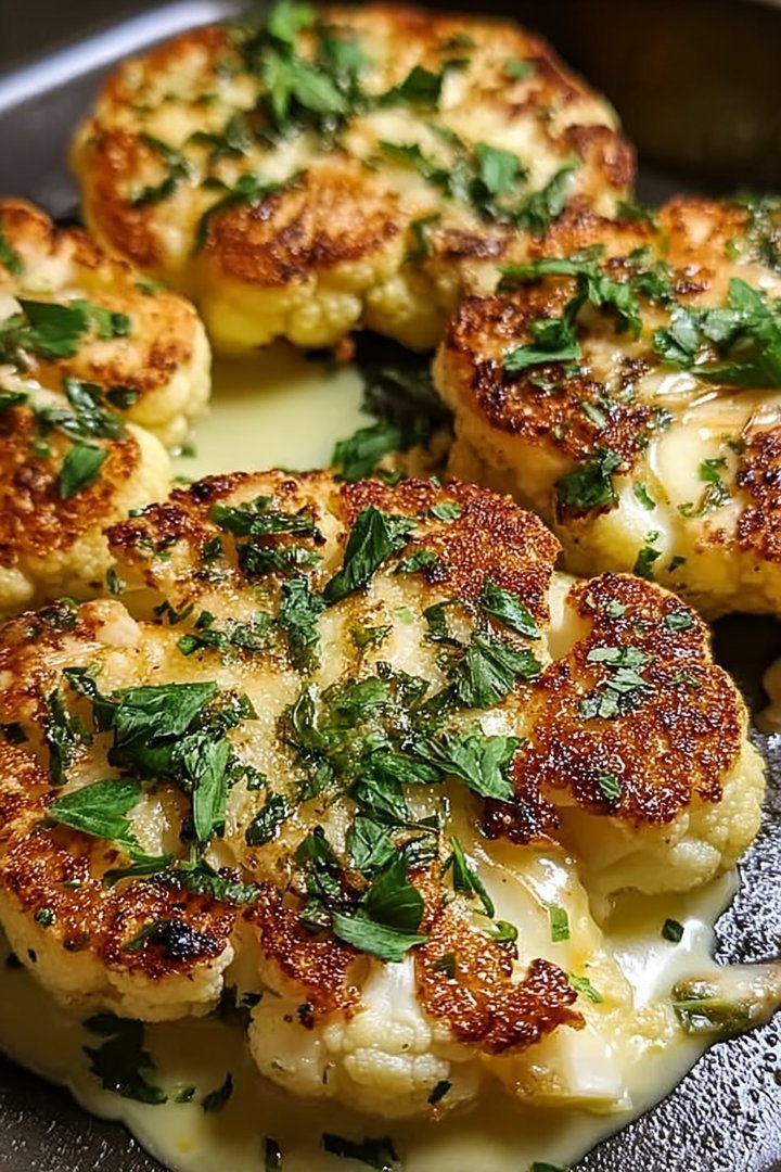 - Serviere die knusprigen Blumenkohlsteaks mit einem frischen Kräuterdip oder einem leichten Salat als Beilage.