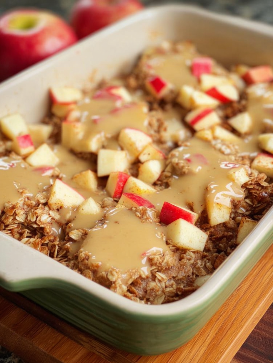 Gebackener Haferbrei mit Apfel-Zimt, ein Gericht, das Erinnerungen an gemütliche Sonntagmorgen und den Duft von frisch gebackenem Apfelkuchen weckt. Stell dir vor, wie die Wärme des Ofens dein Gesicht streichelt, während du auf den ersten Bissen wartest.