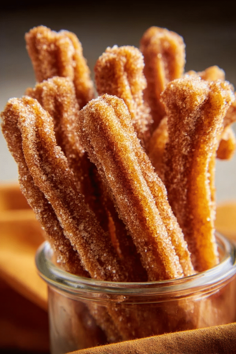 Store leftover churros in an airtight container at room temperature for up to two days. Reheat gently in a preheated oven or air fryer for a few minutes until crispy again. Avoid microwaving, as this will make them soggy.