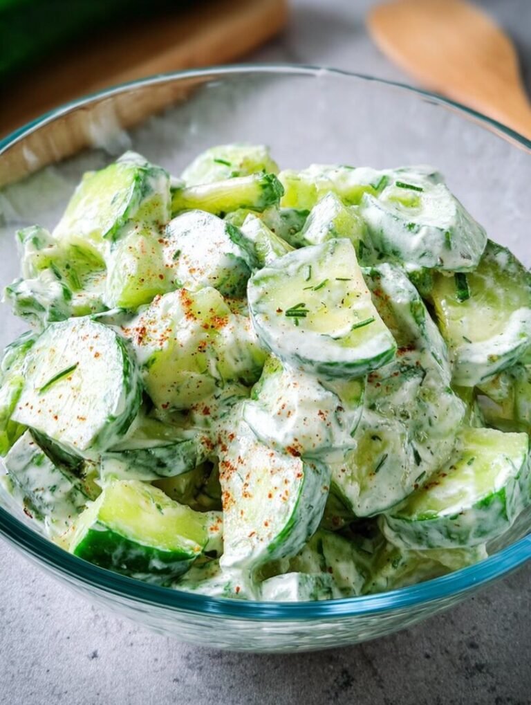 Ein Löffel dieses **leckeren Gurkensalats mit Joghurt-Dressing** katapultiert dich zurück in Mamas Garten, wo die Gurken saftig und prall an den Ranken hingen. Er ist der perfekte Begleiter für Grillabende, Mittagspausen im Büro oder einfach als erfrischender Snack zwischendurch.