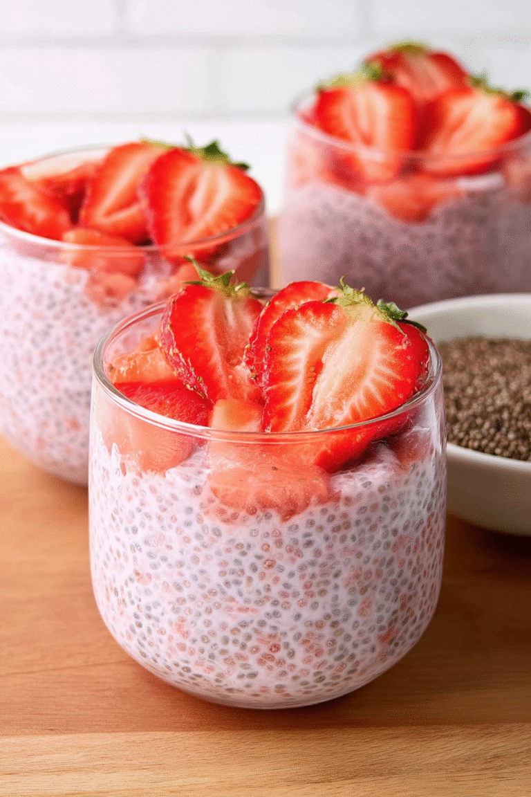 Leckerer Keto-Erdbeer-Chia-Pudding, ein Name, der schon beim Aussprechen die Zunge kitzelt! Stell dir vor: cremige Chiasamen, süße Erdbeeren, alles vereint in einem köstlichen, figurbewussten Dessert.