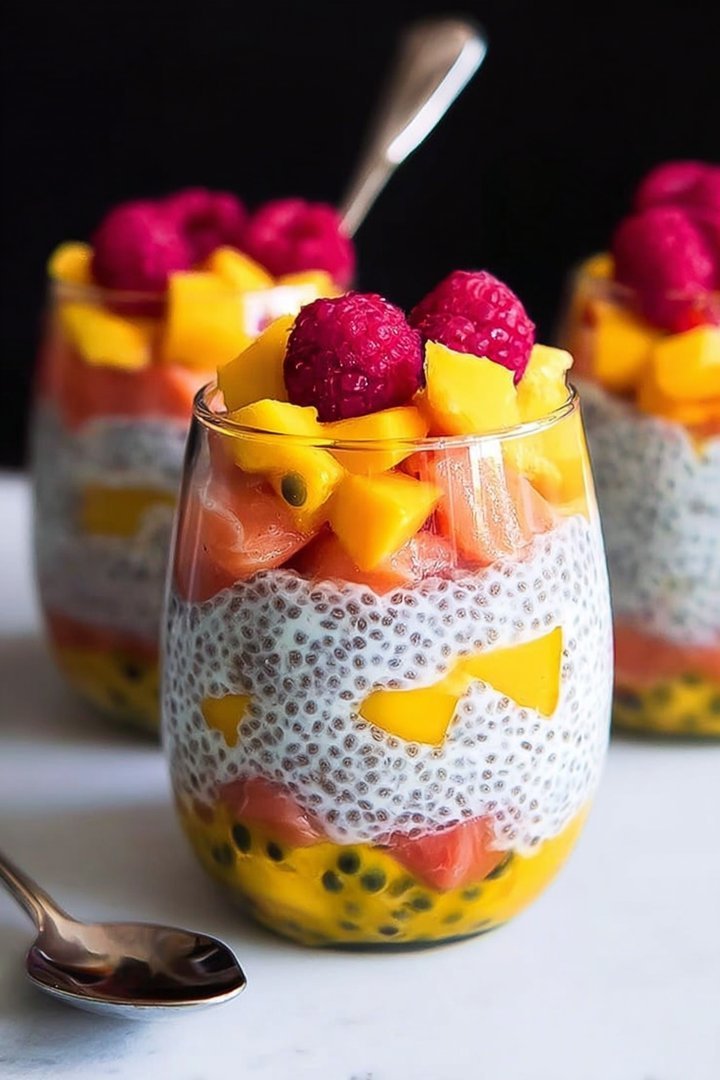 Beyond its delicious taste, this Mango-Chia-Pudding is packed with health benefits. Chia seeds are a fantastic source of fiber, which aids digestion and helps you feel full longer. They’re also rich in omega-3 fatty acids, which are essential for brain health. Mangoes are loaded with vitamins A and C, as well as antioxidants that protect your body against cell damage.