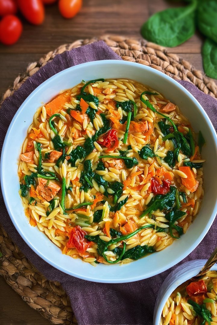 Orzo Pasta Eintopf mit Blattspinat: Ein Herzhaftes Rezept mit Reisnudeln