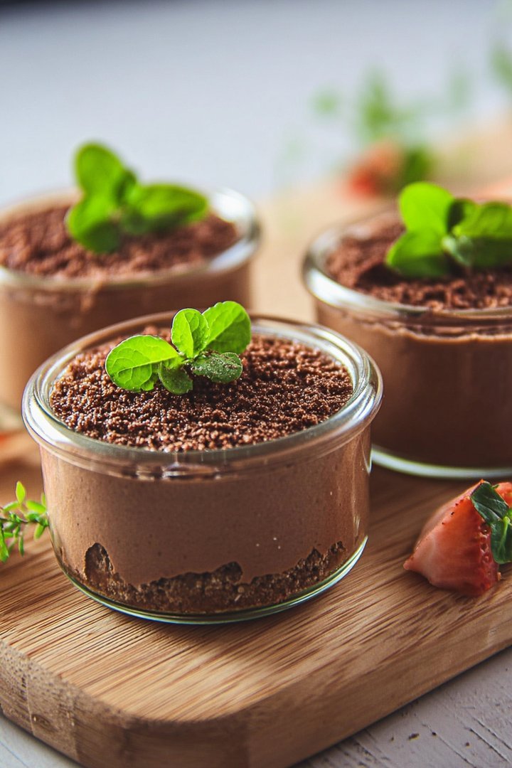 - Step 6: Die Mousse in Gläser oder eine Schüssel füllen und für mindestens 3 Stunden, besser über Nacht, im Kühlschrank kalt stellen. Vor dem Servieren nach Belieben mit Kakaopulver bestäuben oder mit frischen Früchten dekorieren.