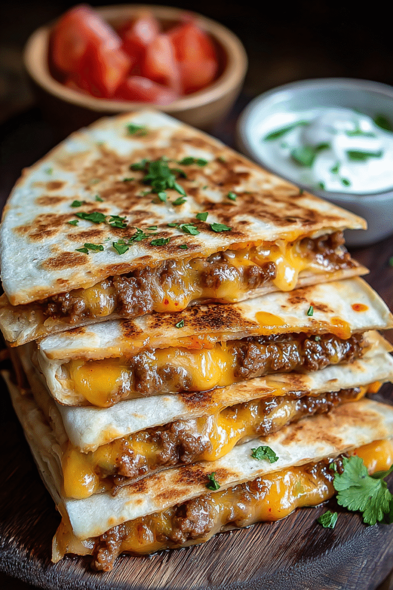Smashburger Quesadillas bieten einen unvergleichlichen Geschmack. Die Kombination aus würzigem Rindfleisch und geschmolzenem Käse ist einfach unwiderstehlich.