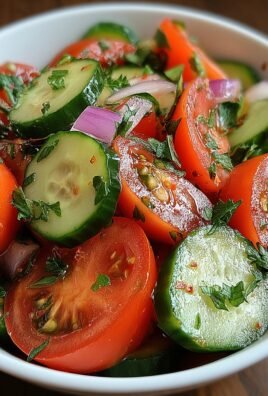 - Ein Fest für die Augen: Die leuchtenden Farben von Tomaten, Gurken und Paprika machen diesen Salat zu einem echten Hingucker auf jeder Tafel.