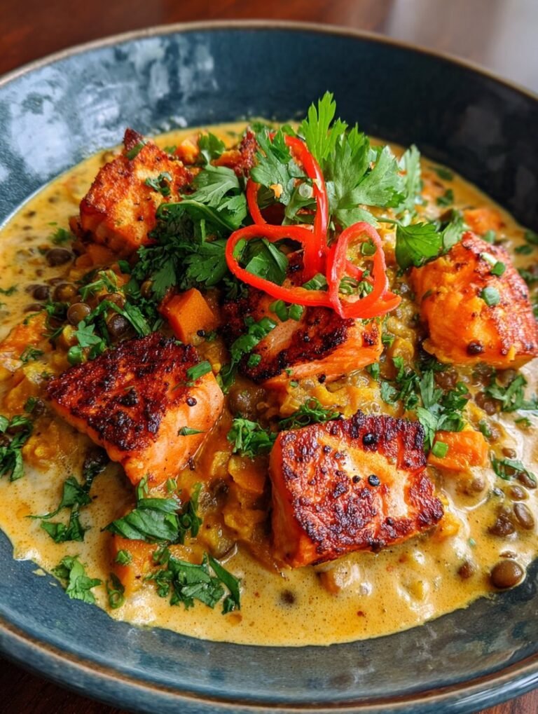 Wenn draußen der Wind heult und die Couch ruft, brauche ich Seelenfutter, das gleichzeitig meine Geschmacksnerven tanzen lässt. DiesesSüßkartoffel-Linsen-Curry mit Kokosmilchist genau dieser Held. Es ist das Gericht, das nach einem langen Tag verspricht, dass alles in Ordnung kommt, und ich verspreche Ihnen, die Küche riecht danach wie eine exotische Wellness-Oase.