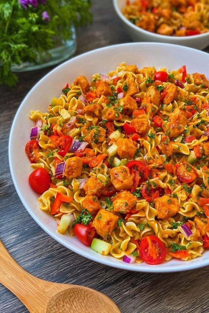 Na klar, das ist überhaupt kein Problem! Lass einfach das Hähnchen weg und füge stattdessen mehr Gemüse hinzu. Oliven, Paprika, Gurken, Tomaten – alles, was dein Herz begehrt! Du könntest auch ein paar Kichererbsen oder weiße Bohnen hinzufügen, um den Salat proteinreicher zu machen. Oder wie wäre es mit etwas Feta-Käse, wenn du es nicht ganz vegan magst? Mit ein paar Anpassungen wird der Türkische Nudelsalat im Handumdrehen zu einem köstlichen vegetarischen Gericht.