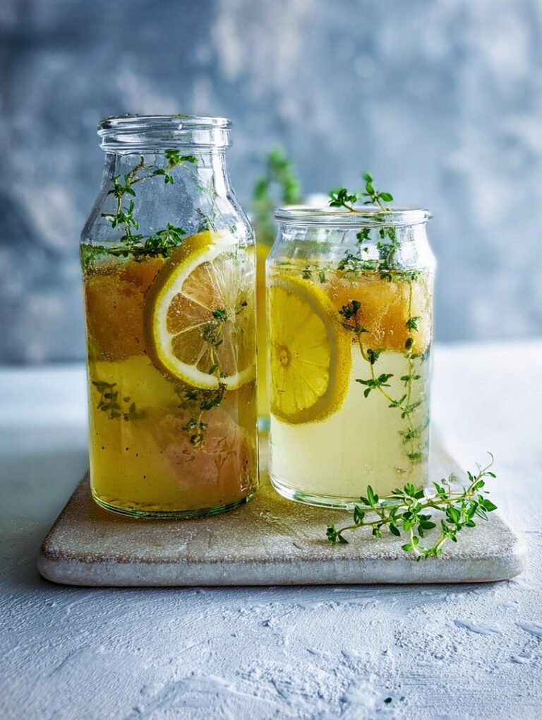 For a festive touch, serve your Zitronengras-Thymian-Limonade in fluted Gläser with a sprig of Thymian and a lime wedge. The presentation elevates the experience, making your guests feel extra special. It’s all about the details!